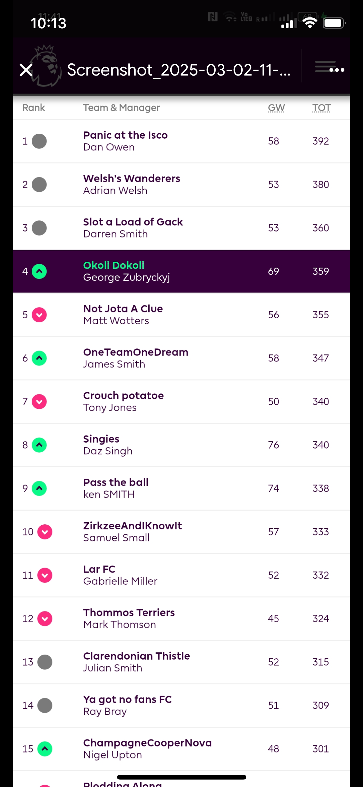 George has sent the attached screenshot from New Zealand and I am pleased to confirm that Dan Owen is the February Manager of The Month – well done Dan, please pop into the club to claim your two pints.