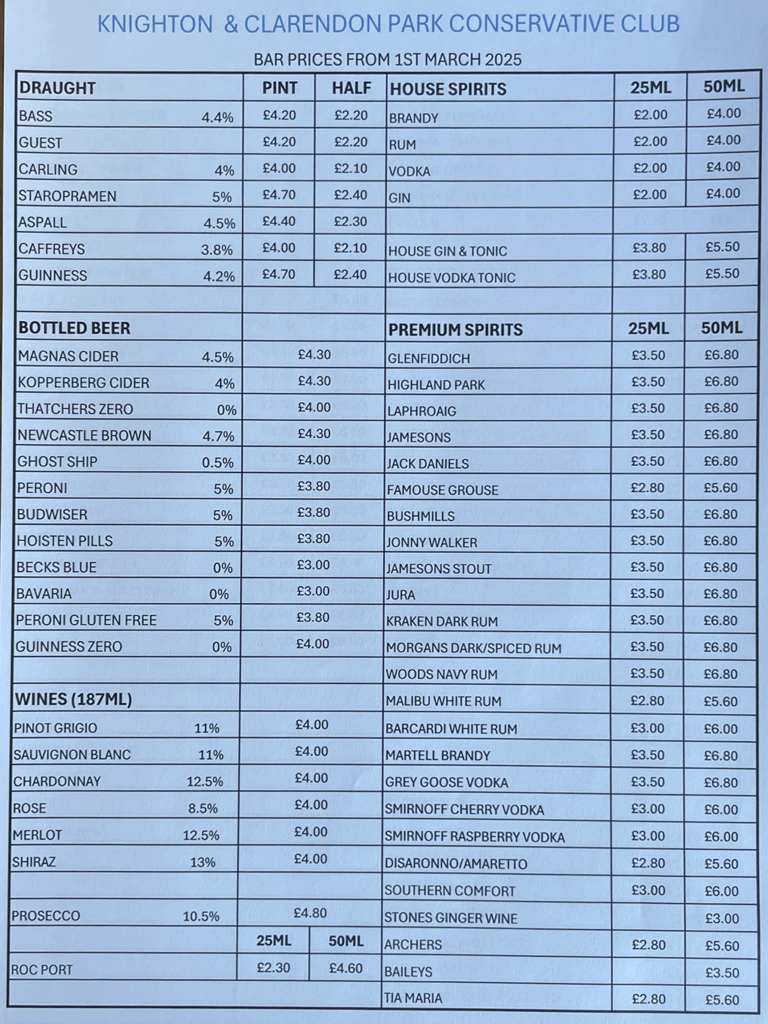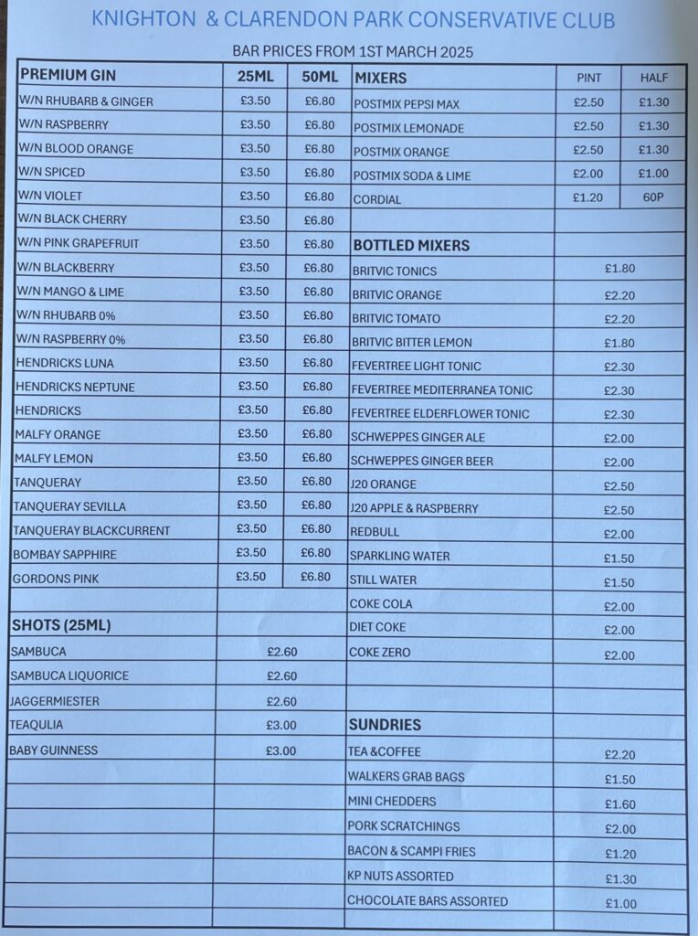 We believe the new prices (the first for 12 months) are very reasonable given the current state of the economy and continuing pressure of constantly increasing running costs. We are also facing a substantial uplift in staffing costs with the double whammy of Living Wage and NI increases next month – these two lines of expenditure alone will raise the wage bill by £7000 – £8000 per annum. Subject to no adverse news in any future budget(s), we hope the prices will remain unchanged until March 2026.